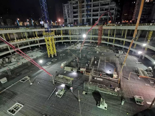 2019年5月5日凌晨一點,武漢建工總承包建設(shè)的武漢市軌道交通七號線一期三陽路風塔配套綜合開發(fā)項目二期工程開始了11000立方米大體積混凝土澆筑施工作業(yè),預(yù)計四天完工。